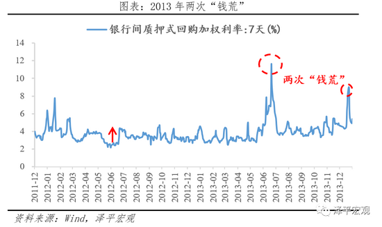 (1)触发因素:影子银行快速扩张,提升债务杠杆,积累金融风险。2012-2013年经济并未明显过热,CPI保持在2%左右,PPI处于负值,但非标兴起、影子银行快速扩张,提升债务杠杆,积累金融风险,促使流动性收紧。2011年起,伴随金融自由化浪潮,影子银行快速扩张,成为信用派生的重要渠道,但金融资产脱离监管快速膨胀,抬升宏观债务杠杆,积累隐性金融风险,成为促使政策转向的重要原因。同时,2013年6月,美联储表态逐步退出量化宽松,年底正式缩减,直到2014年10月结束,全球流动性回流美国,一定程度上制约中国货币政策空间。