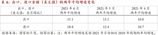 预测7月进口增速降至29.3%(两年平均增速降至13.3%)。国内制造业维持景气度仍然是进口的基本面支撑,但斜率趋于平稳不利于进口增速向上;国际大宗商品价格上涨可能已对部分进口需求产生影响,部分商品进口已经出现下降趋势。