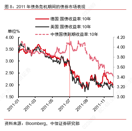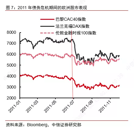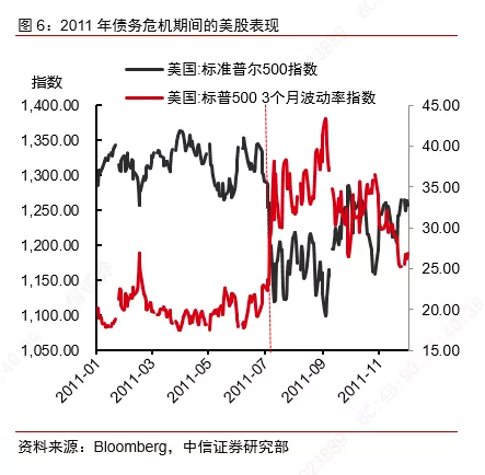 以2011年为例。2011 年由于两党在国债到期之前迟迟没有达成新的预算和债务协议,7月标准普尔和穆迪两家评级机构把美国主权国债放入负面评级观察名单。直到8 月2 号债务违约的最后时刻,两院和政府才达成提高债务上限的协议。与此同时,穆迪调回美国债务评级,然而标普对此并不买账,于8 月5 日宣布美国主权债务评级从“AAA”下调为“AA+”,这也是美国自1917 年以来首次失去AAA 评级。全球金融市场在此期间受到了显著冲击。