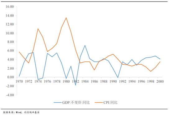 美国传统行业去产能曾引发短期的结构性通胀,但并未引发全面性高通胀。煤炭等采掘业产品价格曾因产量收缩而大涨,但是持续时间并不长。CPI从1980年的13.5%降低到1982年的6.2%。PPI从1980年的14.1%降至1982年的2%。