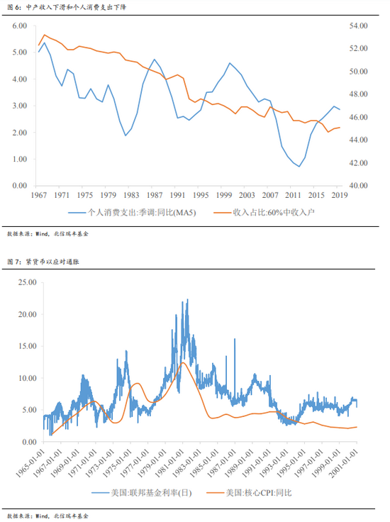 从需求侧来看,46-64年婴儿潮推动70年代全球需求激增的局面得到边际改善;美国中产收入占比下降,消费能力下滑也较大程度上缓解了供需矛盾。此外,80年代初,政府以高利率维持低通胀,提高贴现率,紧货币政策对通货膨胀率起到了明显的抑制作用。
