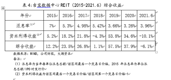 2.吉宝数据中心REITs综合收益率比较