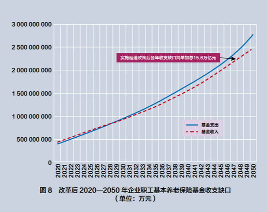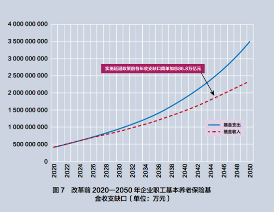 第一,实施延迟退休的必要性。如果不实施延退,当前就需准备现值规模至少20万亿元的基金储备,而目前基金余额和储备基金总计仅有几万亿元。
