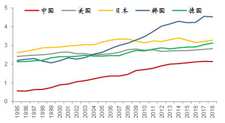 过度偏重于商业牟利,使得我国企业行为上体现出更明显的急功近利的特征。从国际比较看,这种“急功近利”的心态也体现在企业研发投入的结构差异。近年来中国研发支出在GDP的比重明显提升。1995年~2018年中国研发投入占比提升1.6%远高于同期美国(0.4%)、日本(0.7%)、英国(0.1%)等。