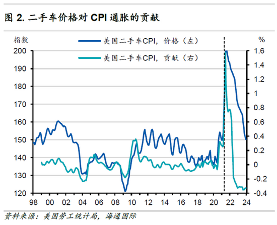 二手车价格的逐月变化可以帮助我们更深入地了解CPI通胀的偏离。二手车价格有明显的季节性趋势,通常在9月至1月期间下降(图1)。