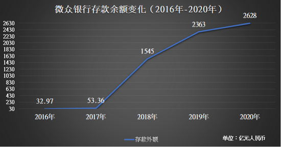 该产品推出后,大受市场欢迎,再加上2018年中P2P出现了一波暴雷潮,很多避险资金开始涌入银行存款。到2018年末,微众银行的存款余额暴增至1545亿元;2019年末,存款余额增长至2363亿元。