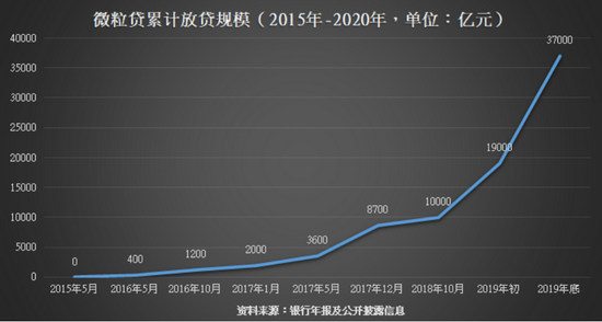 2019年末,微众银行各项贷款余额4400亿元,其中表内贷款1630亿元,小微企业贷占贷款总量的13.6%,八成以上的贷款为小额短期的“微粒贷”。