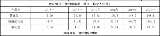 2020年,微众银行净利润为49.57亿元,低于预测39%。