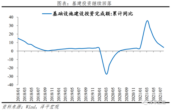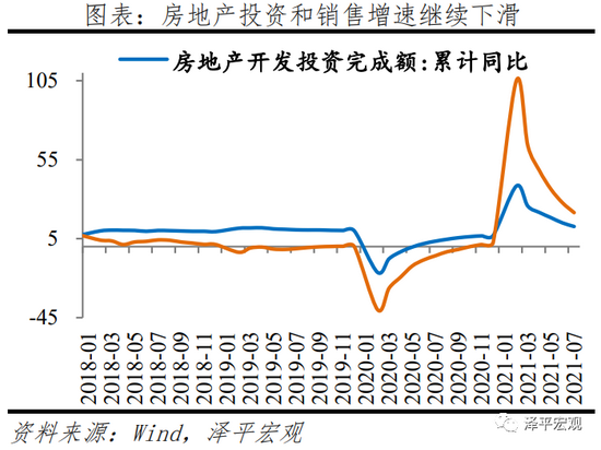 除汽车外各类上中游制造业投资表现优于整体,7月化学原料制造、通用设备、专用设备和铁路航空运输设备同比分别增长19.8%、17.5%、22.2%和32.1%。受缺芯影响,汽车制造业投资同比-9.7%。下游相关制造业表现乏力,拖累制造业整体。食品制造、纺织业、金属制品、同比分别增长1.6%、1.8%和5.2%。预计制造业投资将继续对经济有所支撑,但动能将逐步减弱。