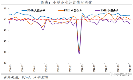 7月大、中、小型企业PMI分别为51.7%、50.0%和47.8%,较上月变动0.0、-0.8和-1.3个百分点。成本抬升、新订单需求下滑、回款压力大,中型企业下滑至临界点、小型企业连续3个月落入临界值以下。小型企业新订单、新出口订单指数分别为47.3%、41.9%,较上月下滑1.5和4.7个百分点;行业成本压力仍挤压下游企业,尤其是小型企业利润,7月小型企业采购量指数为48.2%,较上月下滑1.4个百分点。