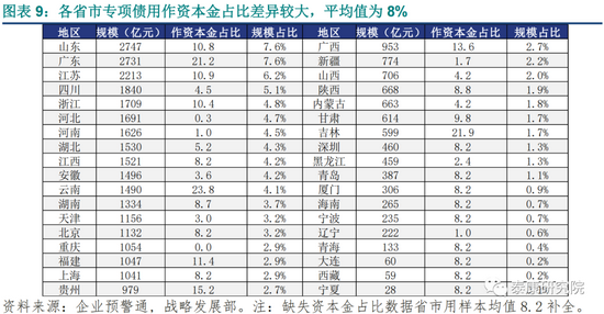 假设3:中性情景-2021年专项债用作项目资本金的占比为10%,悲观情景5%,乐观情景15%。2020年基期为8%。