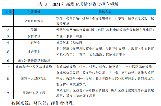 据财政部介绍,2020 年专项债券除用于支持中小银行化解风险外,用于交通、市政和产业园区基础设施,以及职业教育和托幼、医疗、养老等民生服务领域约占 8 成,用于生态环保、农林水利、能源、冷链物流等领域约占 2 成。并对专项债券给予了较高评价,认为新增专项债券发行使用情况良好、符合政策预期,有效发挥了地方政府债券对冲疫情影响、扩大有效投资、促进宏观经济平稳运行的积极作用。