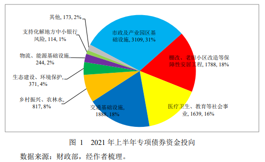 从今年上半年专项债券资金投向上看,用于市政及产业园区基础设施,交通基础设施,棚改、老旧小区改造等保障性安居工程,医疗卫生、教育等社会事业领域的规模最大,分别占全部新增债券的 31%、18%、18%和 16%,而这四大领域占全部新增债券的 83%。用于乡村振兴、农林水利,生态建设、环境保护,物流、能源基础设施领域占全部新增债券的 14%。另有用于支持化解地方中小银行风险的占 1%。