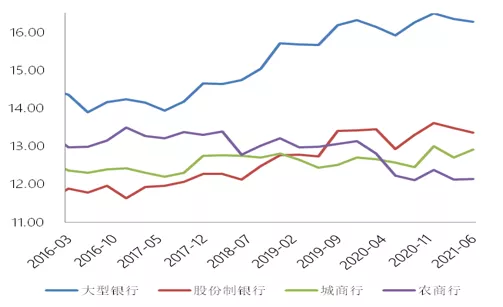 图11 不同类别银行资本充足率变化趋势