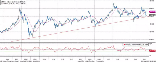 图表3:在上周的抛售后,恒生指数已运行到了一个重要低点