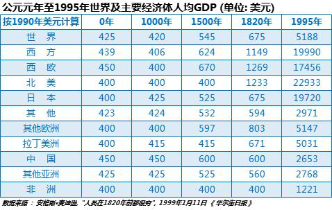 安格斯.麦迪逊教授的研究表明,自公元元年至18世纪中叶英国工业革命的1700多年的大部分时间里,我国经济不但按规模而且按人均都领先于世界,经汉、唐至宋到达顶峰,明、清虽呈走弱趋势但直至14世纪才被西欧超越。只是在英国工业革命后的250多年间,由于没有跟上工业革命的步伐而大大落后。