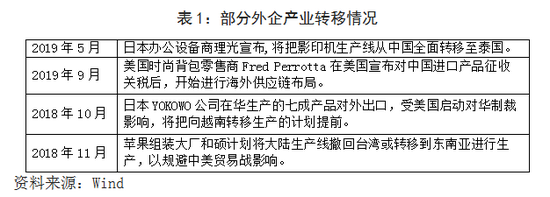 第一,中美贸易摩擦冲击叠加生产要素成本上升,部分产业向海外转移的现象有所增加。部分外资企业向东南亚转移产业链或加快海外布局。比如三星将在华手机业务全部转移到越南,现代汽车将组装业务逐步转移到菲律宾,索尼等电子企业逐步将在华工厂迁移到海外,苹果公司计划将硬件产能从中国移出15%-30%,同时不少美国企业将在华供应链转移到墨西哥。据《上海美国商会2021年中国商业报告》调查,虽然多数美国企业表示将继续扎根中国市场,但2020年已有2%的企业将部分供应链迁至美国,12%的企业已将产业链迁至其他地区。同时,部分中资企业为降低生产成本和规避风险,也向外转移部分产业链和增加海外投资。比如波司登等纺织服装产能不断向东南亚转移。截至2019年,中国在越南投资的纺纱产能占越南纺纱总产能的32%。
