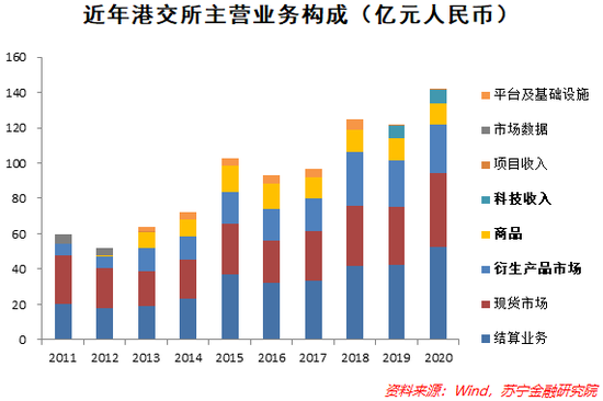 包括所有在联交所的现货市场交易平台以及透过沪港通、深港通在上海和深圳证交所所买卖的股本证券产品。业务收入主要来自于股票的交易费、交易系统使用费以及市场数据费。