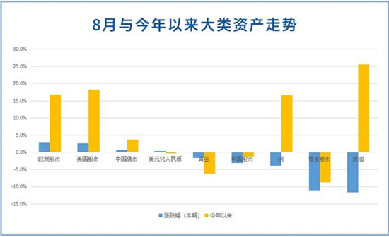 自7月19日至8月20日,海外市场表现突出。海外股市受益于经济持续复苏和美联储等海外央行仍保持宽松政策的影响,本期维持上涨趋势。