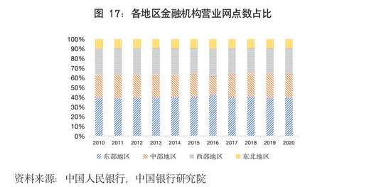 (四)中、西部地区金融业务覆盖面相对滞后,农村金融业务存在短板,普惠金融业务广度和深度不足