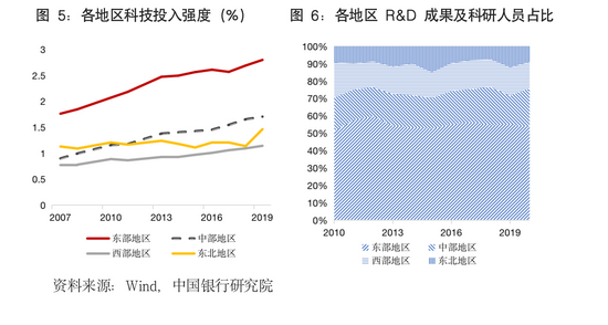 (三)科技投入“东强西弱”,中部地区增长幅度相对较大,东部地区创新驱动优势明显
