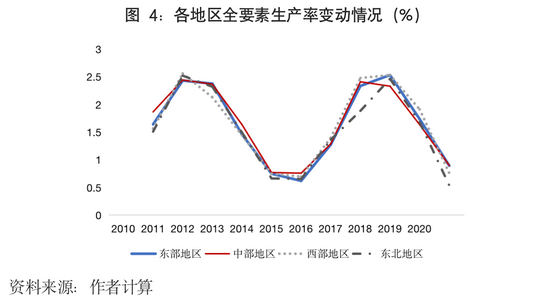 (二)各地区劳动力数量占比趋于下行,全要素生产率有所下降
