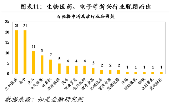 2、行业特征:新兴行业崭露头角,传统行业相对较少