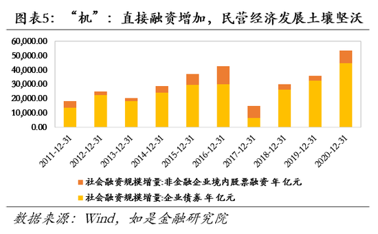“机”——放开市场准入、加速双向混改、打通资本市场,民营企业大有可为。一是“放管服”改革深化,民企市场准入进一步开放。党中央和国务院联合印发的《关于营造更好发展环境支持民营企业改革发展的意见》明确中表示全面落实放宽民营企业市场准入的政策措施,在电力、电信等重点行业和领域放开竞争性业务,进一步引入市场竞争机制,民营企业经营范围得以拓展,大有可为;二是双向“混改”加速推进,民企、国企得以相互“取长补短”。国有资本与民营资本双向引入将成为中国特色混合所有制改革的重要方向。在经济下行压力下,民营资金链出现诸多问题,引入国资可有效缓解民营企业流动性不足、质押风险等问题。未来国有企业和民营企业可在更大范围深度融合,取长补短、相互促进、共同发展。三是多层次资本市场逐渐完善,民企直接融资迎来新机遇。随着近几年科创板设立、创业板注册制落地、北交所成立在即等重大改革实现突破,一套完善的、多层次的、普惠性的资本市场融资体系呼之欲出,未来或将成为实体企业获得直接融资的“沃土良田”。如今各板块功能进一步明确,服务高新科技企业、中小微企业成长的土壤日益肥沃,资本市场支持民营经济发展大有可为。
