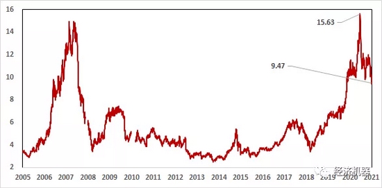 年初至今,核心资产确实进行了一波深度调整,部分个股调整较为充分。作为整体,PB估值从15.6倍,降至9.5倍,仍然偏高(图x),降幅明显,但绝对水平仍然不低。作为一个整体,核心资产调整仍不够充分,仍存在均值回归空间。