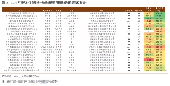 (1)省级唯一融资担保公司担保的首发城投债,其中安徽省信用担保集团、江苏省信用再担保集团、广东粤财融资担保的担保效力较强,且主要聚焦省内担保,政策性担保明显,此类首发担保的城投债可以进一步积极关注;