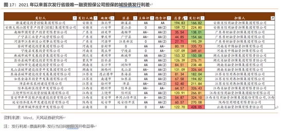 (2)相比2020年,2021年中字头担保公司担保的首发城投债相对多一些(但中债增并未担保),整体降低发行利差效果明显,体现了市场的认可,但供给相对有限。