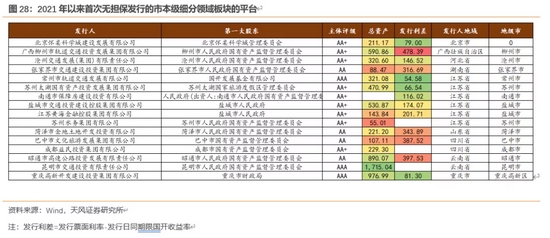 (2)各类型园区平台亮相资本市场首次发行,此类主体主要聚焦区域整体发展水平以及园区招商引资及产业实力:初步梳理来看,2021年以来首次发行的比如福州新区、郑东新区、武汉经开区、惠山经开区、烟台经开区、西海岸新区、温州经开区、重庆经开区这类发展较好的园区可着重关注其首发机会。