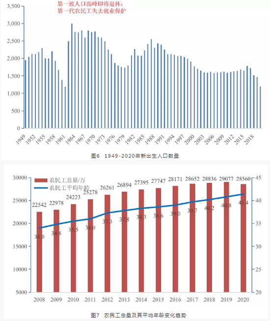 但是,面对“十四五”时期的剧变,必须及时出台延迟退休政策,以延缓高峰期人口退休,减轻劳动力市场的断层压力,为劳动力市场平稳调整和经济健康发展提供窗口期,同时也可以极大地减轻养老金账户陡增的赤字压力。可以说,十四五是中国出台延迟退休政策的最后良机,越是拖延,政策效果越差。特别地,1962年是出生人口高峰期的开始,从上年的1187万人激增至2491万人,1963年是出生人口峰值,高达3000万人,此后趋势性回落。抢抓劳动人口退休高峰期,可以保证政策效果。否则,随着第一波高峰期人口的全面退休,即使调整国家生育政策、放开生育,或利用最低工资政策、反歧视政策等刺激劳动参与率和提高劳动积极性,恐都难以应对未来5-10年的劳动力人口急剧失衡问题。不仅如此,随着农民工群体平均年龄达到41.4岁,高龄农民工开始退出特定市场,特别是制造业和建筑业,这意味着十四五时期,劳动力供给的结构性压力可能进一步加大。