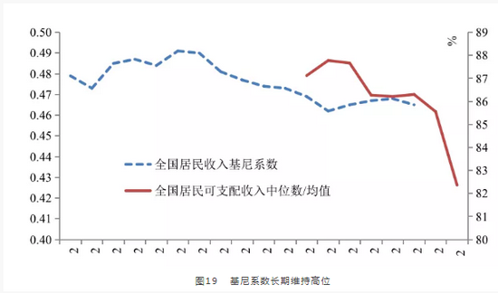 近20年来,全国居民收入基尼系数长期位于0.45-0.5的高位,2019年仍达0.465,累积形成的财富差距更为明显,不仅使得居民消费意愿和消费能力愈发不足,甚至使得青年一代的奋斗意愿下降,各种形式的“躺平”成为网络热词。根据中国人民银行调查统计司的研究报告《2019年中国城镇居民家庭资产负债情况调查》,中国资产排名前10%的城镇家庭占有中国城镇居民家庭总资产的47.5%和净资产的49%,资产排名后60%的城镇家庭仅占有中国城镇居民家庭总资产的19.1%和净资产的17.7%,财富不平等程度已经较为严重。