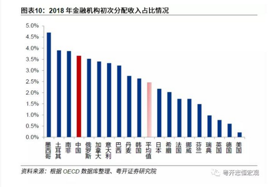 3、企业部门收入占比较高,无论金融机构、非金融机构占比都偏高