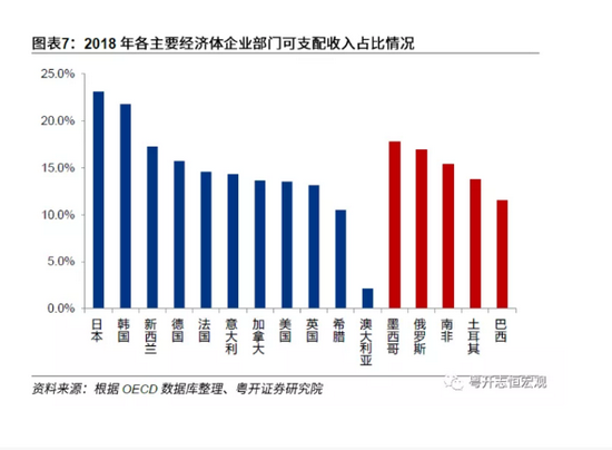 值得注意的是,日、韩两国企业可支配收入占比分别为23.1%和21.8%,显著高于美国(13.5%)、英国(13.1%)、德国(15.7%)、俄罗斯(16.9%)等其他国家。可能由于财团的垄断优势、财团和政治的互惠因素等。