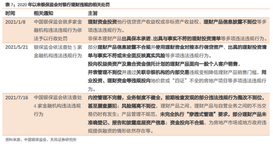 根据2020年以来银保监会公开处罚监管动态,风险隔离、关联交易、资金投向、投资者管理、信息披露、违规出具保本承诺、理财出表与并表等方面还面临一定问题。