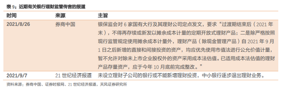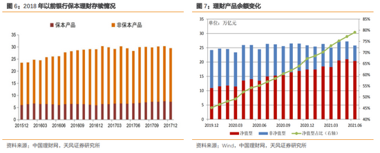 从理财本身来看,根据银保监会表述,“截至7月末,全部理财存量整改任务已完成近七成,预计今年年底前绝大部分银行机构可完成整改;保本理财、不合规短期产品规模均较资管新规发布时下降超过98%”。
