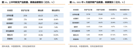 保本理财存量较小,年底前基本可以整改完成。根据银行理财2017年报[6]和2021半年报[7](下称半年报),保本理财余额持续压降,2017年底存续余额为7.37万亿元,到2021年6月存续余额仅0.15万亿元,同比减少90.68%。刚兑预期逐渐打破,上半年新发理财产品中有1173只产品曾发生过跌破初始净值现象,约占全部新发产品总数的4.59%。