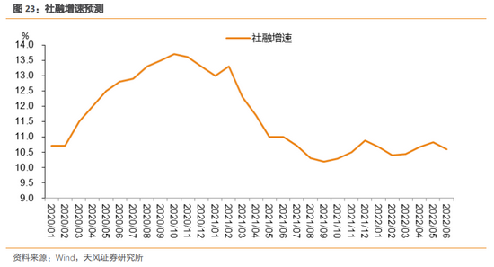在结构性宽信用政策之下,未来不会呈现传统意义上的宽信用或总量信用的快速增长,最多也就是结构性改善,但至少对于后续社融筑底企稳还是有一定支撑。因此,我们判断社融增速回落最快的阶段应该已经过去,今年9、10月份大概率是年内低点,低点可能在10.1%附近。之后随着跨周期设计、季节性因素以及基数效应影响,社融增速会缓慢回升并维持震荡。