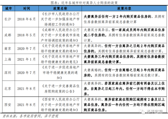 从离异人士购房看,长沙在全国较早对“假离婚”买房的行为进行限制,2018年提出夫妻离异后任何一方2年内购买商品住房的,其拥有住房套数按离异前家庭总套数计算,这限制了通过“假离婚”或者“假结婚”等方式“曲线”买房、炒房之风。长沙市在2018年6月便在《长沙市人民政府办公厅关于进一步加强房地产市场调控工作的通知》中明文单列出规定,夫妻离异后任何一方2年内购买商品住房的,其拥有住房套数按离异前家庭总套数计算。而南京则是在2020年7月才出台的《关于促进我市房地产市场平稳健康发展的通知》才有此项规定;北京则是在2021年8月才出台《关于进一步完善商品住房限购政策的公告》规定夫妻离异的,若原家庭在离异前已拥有两套及以上住房,自离异之日起三年内,任何一方均不得在本市购房。在打击“假离婚”方面,长沙与南京、上海、深圳、北京等城市相比较早出台政策堵住通过“假离婚”方式获取购房资格的漏洞,这限制了通过“假离婚”或者“假结婚”等方式“曲线”买房、炒房之风。