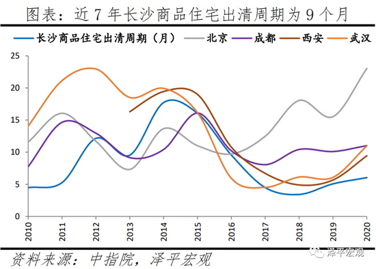 房屋市场供应相对充足,从销供比看,近10年长沙商品住宅销供均维持在0.8-1.2的正常区间。从出清周期看,近7年长沙商品住宅平均出清周期为9个月,低于北京、西安等城市。根据中指院的数据,2010-2021年7月,长沙商品住宅销供比从1.0上升到1.2,虽然在2016年、2017年、2018年出现供给缺口,但长期销供比浮动较小,而同期北京销供比浮动较大,多次低于0.8和高于1.2,如2018年仅为0.5;成都销供比浮动也较大,如2011年仅为0.6,但2017年为1.5。长沙长期保持商品住宅供需均衡,使得房价波动较小。出清周期方面,根据中指院的数据,2013-2020年长沙年均出清周期为9个月,而同期北京、西安、武汉年均出清周期分别为14个月、12个月、11个月。