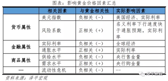 总结影响黄金价格的各类因素,主要分为六大方面,然而从六大因素的背后实际驱动因素来看,主要与美国经济及实际利率,央行购/售金行为变化密切相关:
