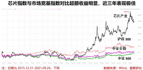 长期来看,指数净值稳健增长,收益表现良好。相比于沪深300、中证全指、中证500等市场宽基指数有明显的超额收益。从2015年12月31日基期日至今,中证芯片产业指数的年化收益为19.77%,近三年的年化收益更是高达56.4%,表现非常优秀。