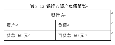 假设银行A投放出去的不是50元贷款,而是100元,如表2-14所示: