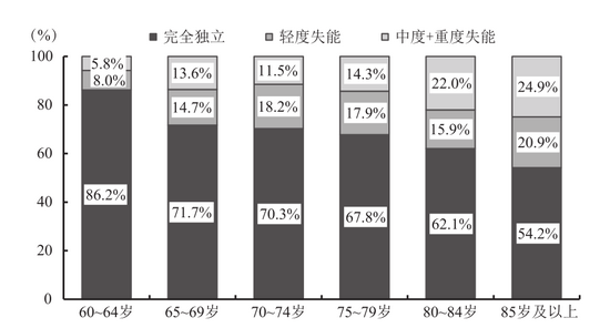 中国不同年龄段老年人的失能状况