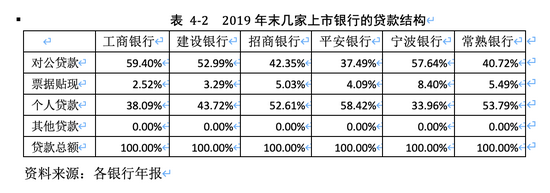 以下是几家主要上市银行2019年末的贷款结构(见表4-1):