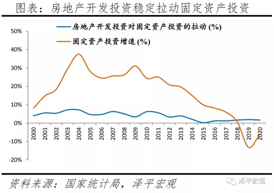 从投资看,2020年房地产完全拉动的投资占全社会固定资产投资的51.5%,其中房地产开发投资占固定资产投资的27.3%。
