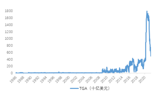 TGA账户压降将继续向市场投放美元性(Via FRED,天风证券)
