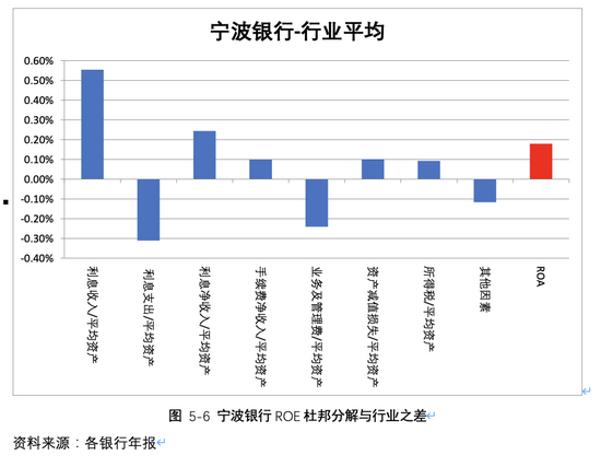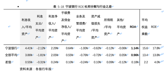 用所分析的银行的杜邦分解结果减去行业平均,来判断其相对行业的优劣势,如表5-18:
